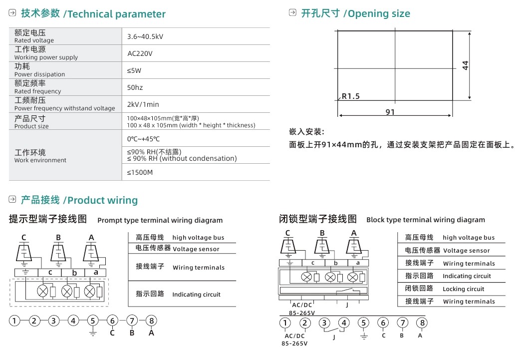 Indoor High-Voltage Live Display Device DXN8D-Q/T Plug-in Type သည် ဗို့အားမြင့်ခလုတ်ဂီယာအတွက် "အခြေအနေအချက်ပြမီး" ဖြစ်သည်။ ၎င်း၏လုပ်ဆောင်မှုနိယာမတွင် အတွင်းပိုင်းအာရုံခံကိရိယာများမှတစ်ဆင့် ဗို့အားမြင့်လျှပ်စစ်စက်ကွင်းတည်ရှိမှုကို အာရုံခံပြီး ရလဒ်ကို အလိုလိုသိမြင်နိုင်သောနည်းလမ်း (အလင်း သို့မဟုတ် အလင်းရောင်မရှိခြင်း) ပါဝင်သည်။