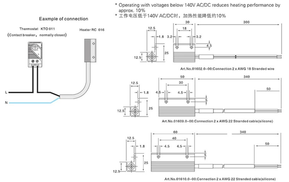 အပူဒြပ် PTCheating ဒြပ်စင် ကာကွယ်မှုအဆင့် IP20